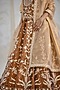 Featuring a coffee brown-gold lehenga in silk tissue organza base with gota embroidery. It is paired with a short kurta and a dupatta. Accentuate it with gold or polki jewellery and heels for a reception, sangeet, wedding or engagement ceremony.