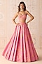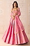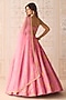 Featuring a coral pink pleated lehenga in brocade base. It is paired with a zardosi embroidered sleeveless blouse and an organza dupatta. Accentuate the designer lehenga with silver jewellery, block heels and a potli bag for a wedding, sangeet or engagement ceremony.