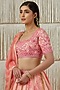 Featuring a coral pink lehenga in cotton satin base with print. It is paired with a matching blouse having thread embroidery and a flat chiffon dupatta.