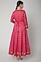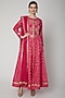 Featuring a dark pink anarkali in chanderi and dupion silk base with zardosi embroidery. It is paired with matching pants and a dupatta.