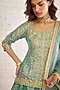 Dusty Turquoise Green Tissue Organza Brocade Embroidered Lehenga Set
