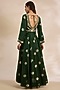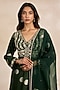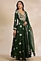 Featuring a forest green anarkali in silk brocade and organza base. It is paired with pants and a dupatta. Accentuate it with statement jhumkas, a sleek low bun and embellished heels for a stylish ensemble, ideal for wedding festivities, festive gatherings or evening celebrations.