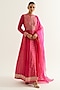 Fuchsia Silk Brocade & Georgette Zardosi Embroidered Anarkali Set