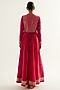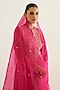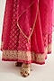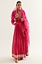 Featuring a fuchsia anarkali in silk brocade and georgette base with zardosi embroidery. It is paired with trousers and an organza dupatta. Accessorize it with heels and statement earrings for weddings or festive occasions.