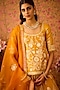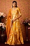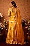 Gold Yellow Silk Brocade Applique & Thread Embroidered Paneled Lehenga Set