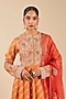 Featuring a golden orange anarkali in banarasi brocade base with zardosi hand embroidery. It is paired with trousers and an organza dupatta. Accentuate it with kundan polki jewellery and block heels for festive occasion or sangeet ceremony.