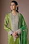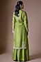 Featuring a green kurta in banarasi silk base. It is paired with sharara and an organza dupatta. Accentuate it with statement jewellery and heels for a mehendi ceremony or festive occasions.
