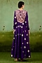 Featuring a heliotrope purple anarkali in silk brocade base with gota ribbon and thread embroidery. It is paired with pants and an organza dupatta. Style it with statement earrings, soft curls and block heels, perfect for festive gatherings or sangeet ceremony.