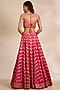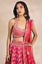 Featuring a hibiscus pink lehenga in raw silk and organza base. It is paired with a blouse, a belt and a dupatta. Accentuate it with polki jewellery, an embroidered potli bag and embellished heels for a stylish ensemble, ideal for wedding ceremonies, bridal receptions or grand wedding celebrations.