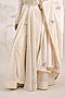 Featuring an ivory anarkali in chanderi brocade base with zardosi embroidery. It is paired with pants and a chanderi dupatta. Style with statement kundan or polki jewelry, a sleek bun, and dewy makeup for wedding and sangeet ceremonies.
