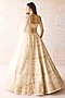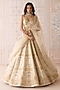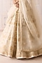 Featuring an ivory lehenga in raw silk base with applique embroidery. It is paired with a blouse, an organza dupatta and a belt. Accentuate the designer lehenga with emerald jewellery, block heels and a potli bag for a wedding, reception or engagement ceremony.