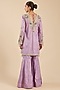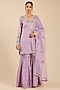 Featuring a lavender mist kurta in banarasi silk base with zardosi embroidery. It is paired with sharara pants and an organza dupatta. Accentuate it with kundan polki jewellery and block heels for festive occasion or sangeet ceremony.