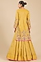 Featuring a maize yellow kurta in banarasi silk base with zardosi embroidery. It is paired with a skirt and an organza dupatta. Accentuate it with kundan polki jewellery and block heels for festive occasion or haldi ceremony.