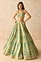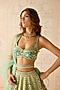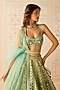 Featuring a mist teal green lehenga in raw silk base with dori embroidery. It is paired with a blouse, an organza dupatta and a belt. Accentuate the designer lehenga with polki jewellery, block heels and a potli bag for a wedding, mehendi or engagement ceremony.