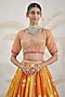Featuring a multi-colored lehenga in banarasi georgette base with zardosi hand embroidery. It is paired with a blouse and an organza dupatta. Accentuate it with kundan jewellery and heels for a reception, sangeet, wedding or engagement ceremony.