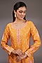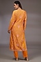 Featuring a mustard yellow kurta in chanderi silk base with thread and dori embroidery. It is paired with trousers and a dupatta. Accentuate it with statement earrings and heels for a festive occasion or pooja ceremony.