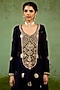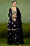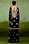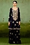 Featuring a navy blue kurta in silk brocade base with zardosi hand embroidery. It is paired with sharara pants and an organza dupatta. Style it with statement earrings, soft curls and block heels, perfect for festive gatherings or sangeet ceremony.