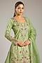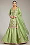 Featuring a nile green kurta in banarasi silk base with zardosi embroidery. It is paired with a skirt and an organza dupatta. Accentuate it with kundan polki jewellery and block heels for festive occasion or mehendi ceremony.