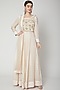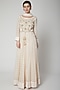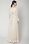 Featuring an off white anarkali in cotton satin and georgette base with block print and zardosi embroidery. It is paired with matching pants and a dupatta.