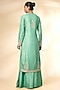 Featuring an opal green kurta in banarasi silk base. It is paired with sharara pants and an organza dupatta. Accentuate it with statement jewellery and heels for wedding ceremony or festive occasions.