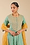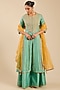 Featuring an opal green kurta in banarasi silk base with zardosi embroidery. It is paired with sharara pants and an organza dupatta. Accentuate it with kundan polki jewellery and block heels for festive occasion or mehendi ceremony.