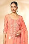 Featuring a peach kurta in silk brocade base. It is paired with sharara pants and an organza dupatta. Accentuate it with statement jewellery and heels for wedding ceremony or festive occasions.