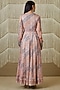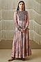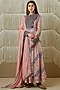Featuring a pink and navy blue anarkali in cotton satin base with zardosi embroidery and print. It is paired with matching pants in rayon twill base and a flat chiffon printed dupatta.