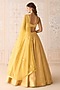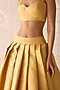 Featuring a primrose yellow pleated lehenga in brocade base. It is paired with a blouse and a lurex patch dupatta. Accentuate the designer lehenga with polki jewellery, block heels and a potli bag for a wedding, haldi or engagement ceremony.