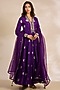 Featuring a purple anarkali in silk brocade and organza base. It is paired with pants and a dupatta. Accentuate it with statement jhumkas, a sleek low bun and embellished heels for a stylish ensemble, ideal for wedding festivities, festive gatherings or evening celebrations.