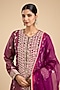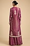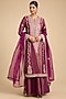 Featuring a purple-wine kurta in banarasi silk base. It is paired with a sharara and an organza dupatta. Accentuate it with statement jewellery and heels for wedding ceremony or festive occasions.