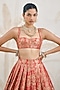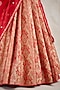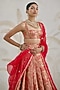 Featuring a ribbon red pleated lehenga in banarasi silk brocade base. It is paired with a blouse and a silk organza zardosi embroidered dupatta. Accentuate it with choker necklace set and heels for a reception, sangeet, wedding or engagement ceremony.