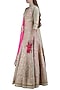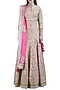 Featuring a sage green lehenga skirt in silk base with gota embroidery. It is paired with a matching blouse and dupatta in net base.