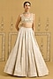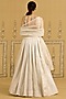 Featuring a silver brocade pleated lehenga in raw silk base with zardosi and thread embroidery. It is paired with a blouse and an organza dupatta. Accentuate the designer lehenga with gold jewellery, embellished heels and a potli bag, perfect for a sangeet or a wedding ceremony.