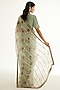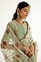 Smoke Green Silk Organza Zardosi Embroidered & Hand Block Printed Saree Set
