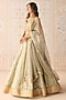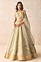 Featuring a smoke grey lehenga in tissue organza brocade base with zardosi embroidery. It is paired with an embroidered blouse, a belt and an organza dupatta. Style with delicate chandbalis and soft glam makeup for a romantic feel, perfect for intimate ceremonies or pre-wedding events.
