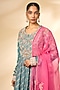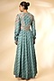 Featuring a storm blue anarkali in banarasi brocade base. It is paired with pants and an organza dupatta. Accentuate it with statement jewellery and heels for wedding ceremony or festive occasions.
