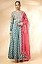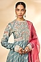 Featuring a storm blue anarkali in banarasi brocade base. It is paired with pants and an organza dupatta. Accentuate it with statement jewellery and heels for wedding ceremony or festive occasions.