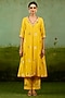 Vibrant Yellow Silk Brocade Hand Embroidered A-Line Kurta Set