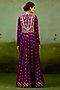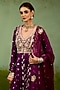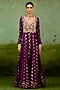 Featuring a wine purple anarkali in silk georgette and brocade base with zardosi hand embroidery. It is paired with pants and an organza dupatta. Style it with statement earrings, soft curls and block heels, perfect for festive gatherings or sangeet ceremony.