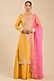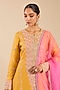 Featuring a yellow kurta in banarasi silk base with zardosi embroidery. It is paired with sharara pants and an organza dupatta. Accentuate it with kundan polki jewellery and block heels for festive occasion or haldi ceremony.