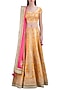 Featuring a yellow lehenga set in silk and net base with marigold gotta work embroidery.