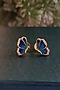 Gold Finish Blue Zircon Stud Earrings In Sterling Silver