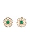 Gold Finish Emerald & Polki Stud Earrings In Sterling Silver
