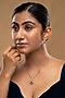 Featuring a 22kt gold rhodium plated pendant chain necklace studded with green zircons, set in 92.5 sterling silver. It is paired with a matching pair of earrings. These necklace embody refined elegance and timeless style, perfect wear for festive occasions or wedding ceremonies.
