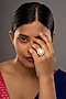 Featuring a 22kt gold rhodium plated ring studded with yellow kundan polki, set in 92.5 sterling silver. This ring embody refined elegance and timeless style, perfect wear for festive occasions or wedding ceremonies.