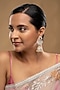 Featuring a pair of 22 kt gold rhodium plated dangler earrings studded with zircons, set in 92.5 sterling silver. Perfect choice for festive celebrations, wedding or sangeet ceremonies.