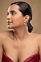 Featuring a pair of 22 kt gold rhodium plated stud earrings studded with zircons, set in 92.5 sterling silver. Perfect choice for festive celebrations, wedding or sangeet ceremonies.