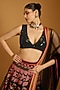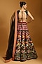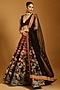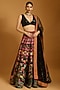 Featuring a black lehenga in raw silk and dupion base with multi-colored threadwork. It is paired with a georgette blouse having sequins and beadwork, including a net dupatta. Accentuate it with statement chandelier or diamond earrings, an embellished clutch and strappy metallic heels for a graceful ensemble, ideal for engagement ceremonies or sangeet nights.