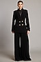 Featuring a black double breasted blazer in microfiber and heavy knit base. It is paired with pants. Accentuate it with statement earrings and heels for cocktail parties.