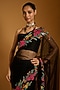 Black Net Floral Embroidered Saree Set